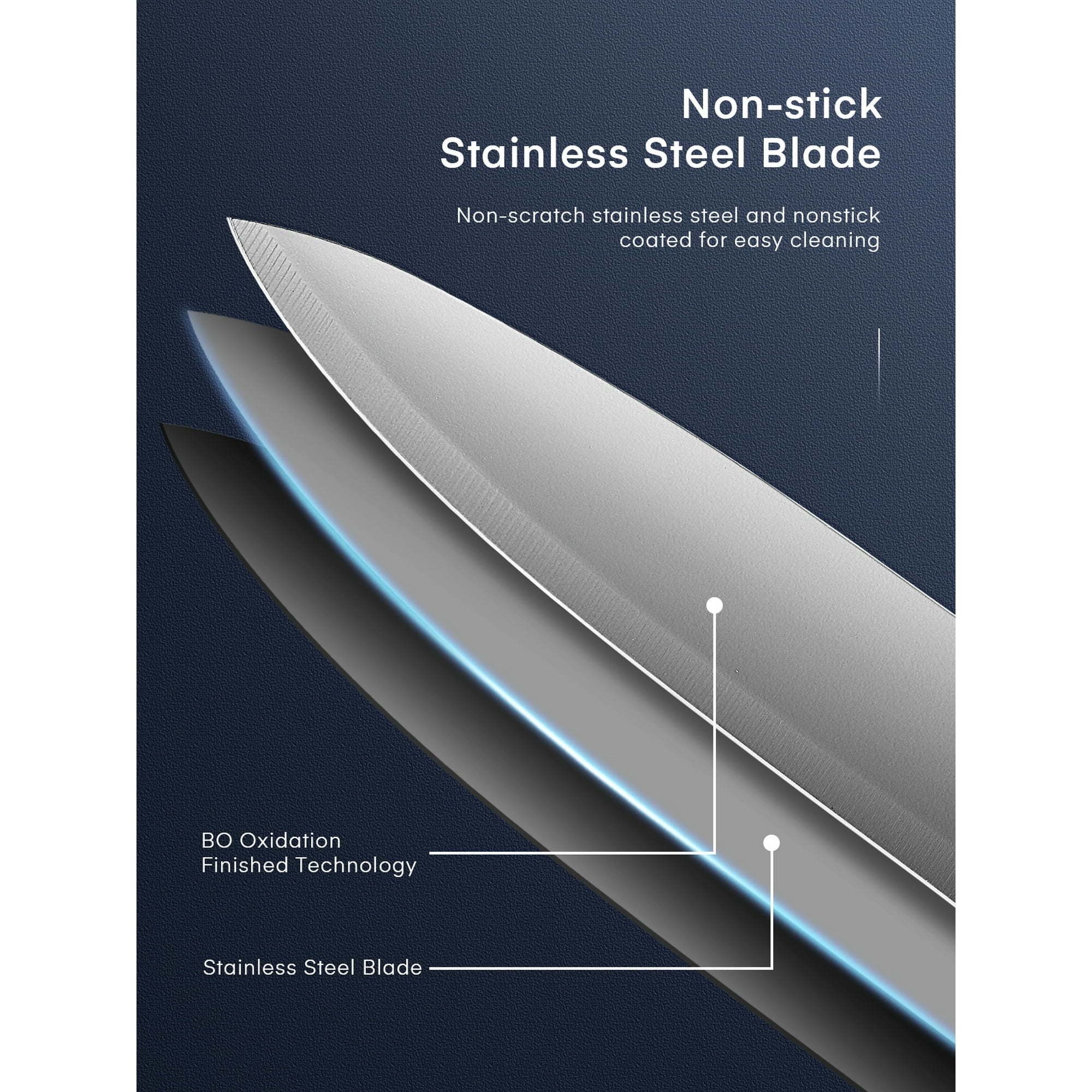 Black non-stick coated stainless steel blades are crafted from superior high carbon stainless steel for against corrosion and rust.