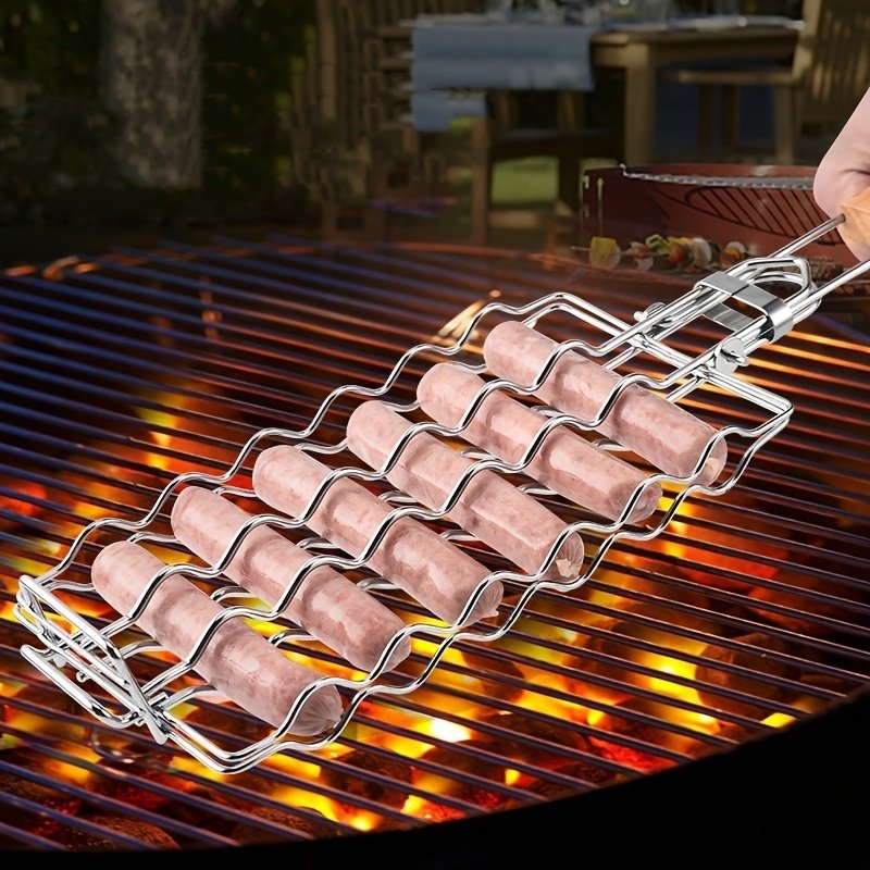 1pc Sausage Grill Net BBQ Tools 304 Stainless Steel Corn Grill Removable Folding Portable Grill Net Clip; Household Barbecue Tool; Kitchen Utensils