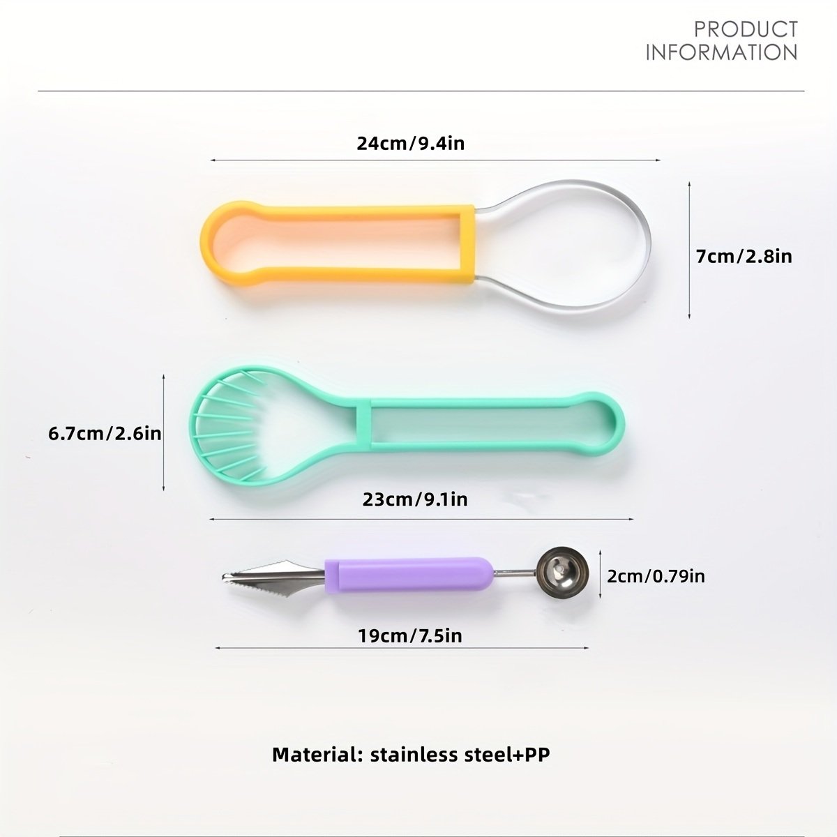 Home > 3pcs Set Kitchen Fruit Carving Knife Three-piece Set Of Stainless Steel Watermelon Digging Spoon Fruit Platter Tool Digging Ball Set