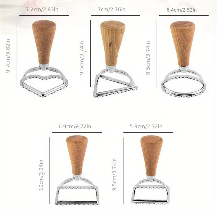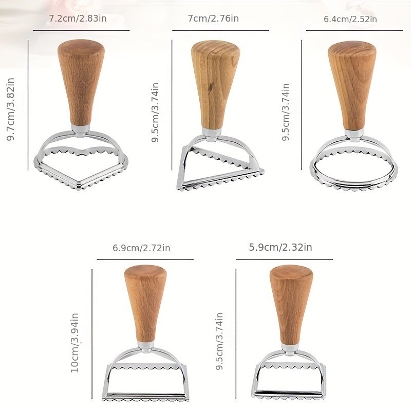 5 Pack Cookie Stamp Maker Cutter Wooden Handle Lace Pastry Mold With Fluted Edge