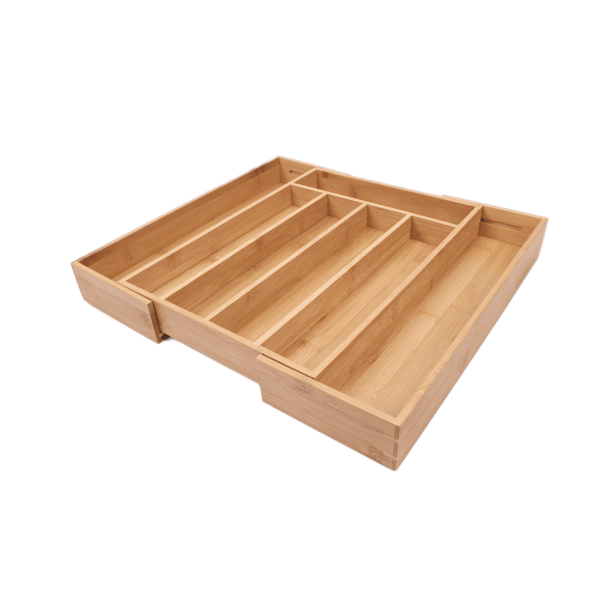 Our Better Homes & Gardens Natural Bamboo Expandable Silverware Organizer includes five main compartments for spoons, knives, forks, and serving utensils with two additional compartments for larger kitchen tools. It is made from 100% bamboo. This drawer organizer is durable and water-resistant so it will withstand years of use. And it is waterproof, insect resistance, which can keep your families from mildew and harmful gas. Bamboo products are easy to clean and can be effectively avoided the reproduction free from mold. The warm, neutral wood coloring will blend elegantly with your decor and it's perfectly sized to fit into most standard sized drawers ranging from 10.04" – 15.35" in width. When we have a lot of things to keep attention at while cooking - it’s important to have everything we need in one place. To make sure all-time favorite things are in plain sight, get yourself a kitchen drawer organizer.