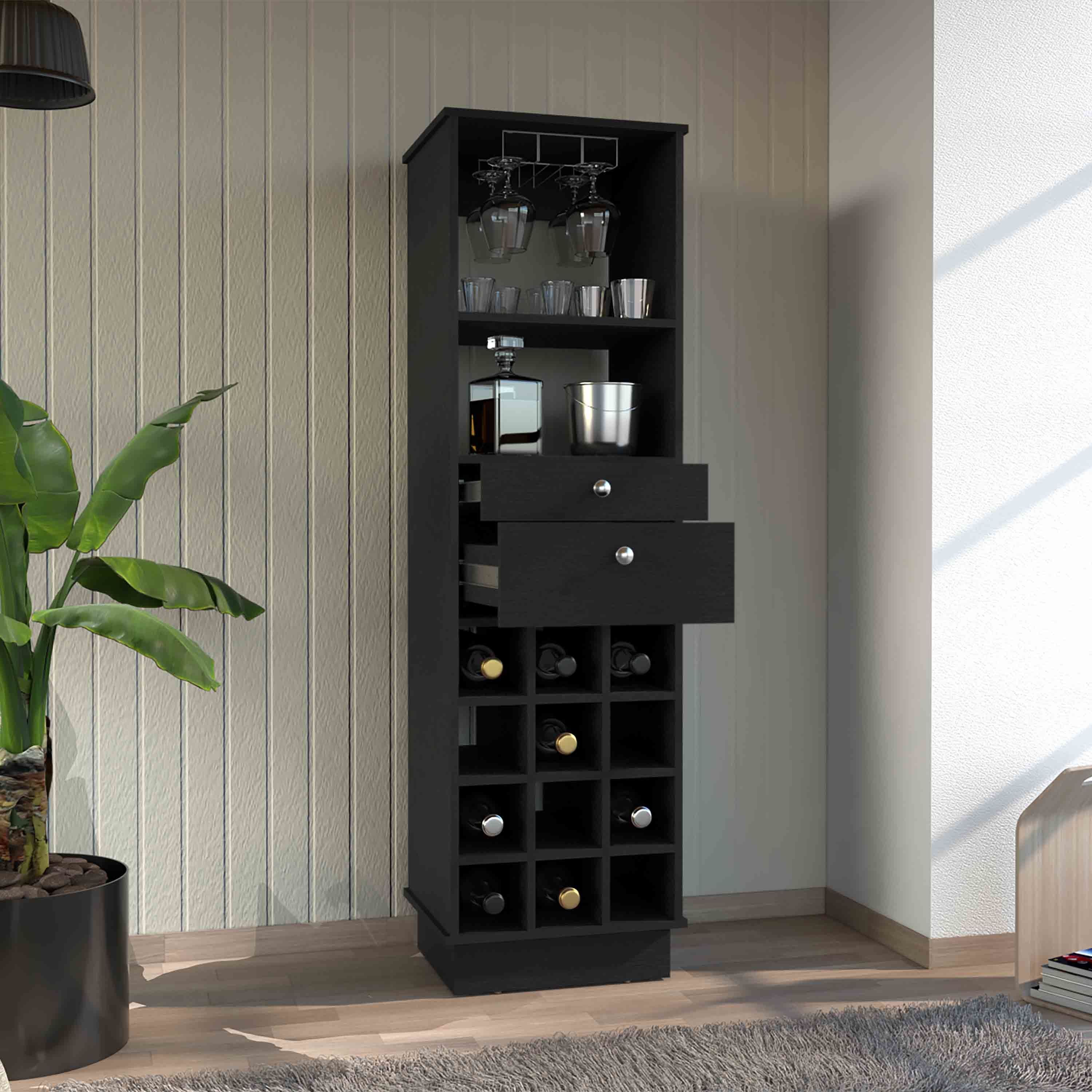 Classic Bar Cabinet, Two Drawers, Twelve Built-in Wine Rack-Black