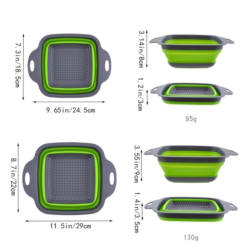 Home > Collapsible Colander Set Of 2; Silicone Square Strainer With Handle For Kitchen Food Draining Pasta Vegetable Fruit And Meat