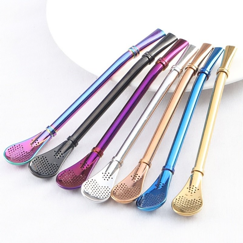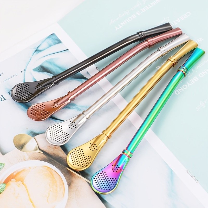 1pc Reusable Stainless Steel Straw - Creative; Multipurpose Spoon for Coffee; Milk; and More!