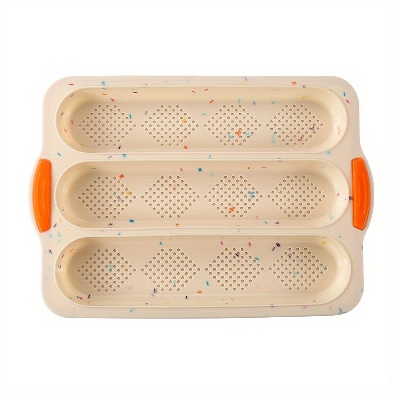 1pc; Silicone Baguette Pan; French Bread Baking Pan; Perforated 3 Loaves Baguettes Bakery Tray; Baking Tools; Kitchen Gadgets; Home Kitchen Items