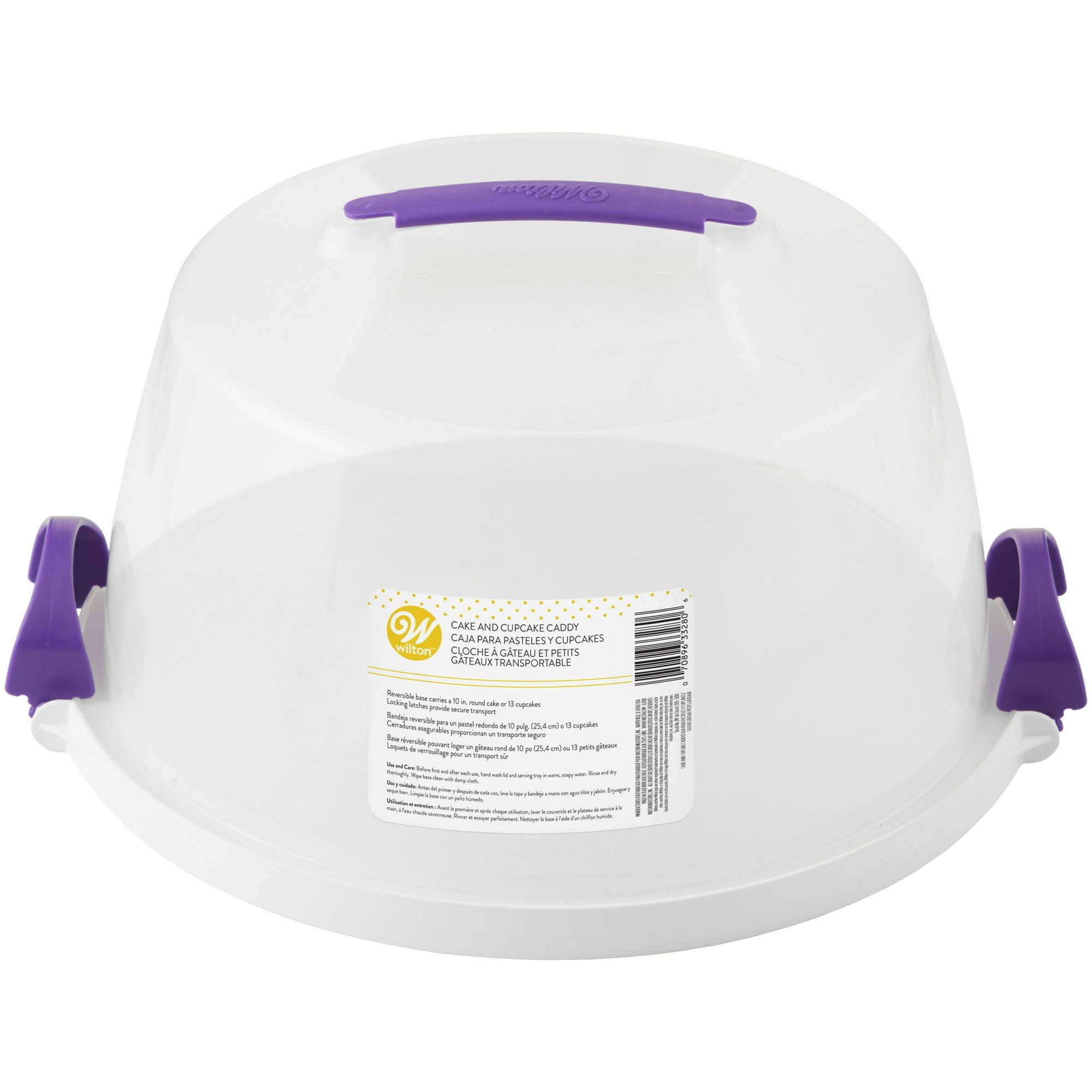 Introducing the Wilton Cake and Cupcake Carrier: your go-to solution for transporting your sweet creations. This transparent white caddy accommodates a 10-inch round cake or up to 13 standard cupcakes with ease. Its reversible base securely locks to the top, ensuring safe transportation. Crafted from durable polypropylene, this carrier is designed for your convenience. Make every dessert journey worry-free with this essential tool. Don't forget to wash it in warm, soapy water for the best results before and after each use.
